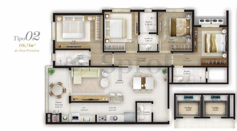 • Espaço Gourmet com Churrasqueira